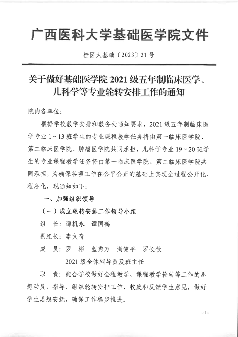 关于做好2021级五年制临床医学、儿科学等专业轮转安排工作的通知