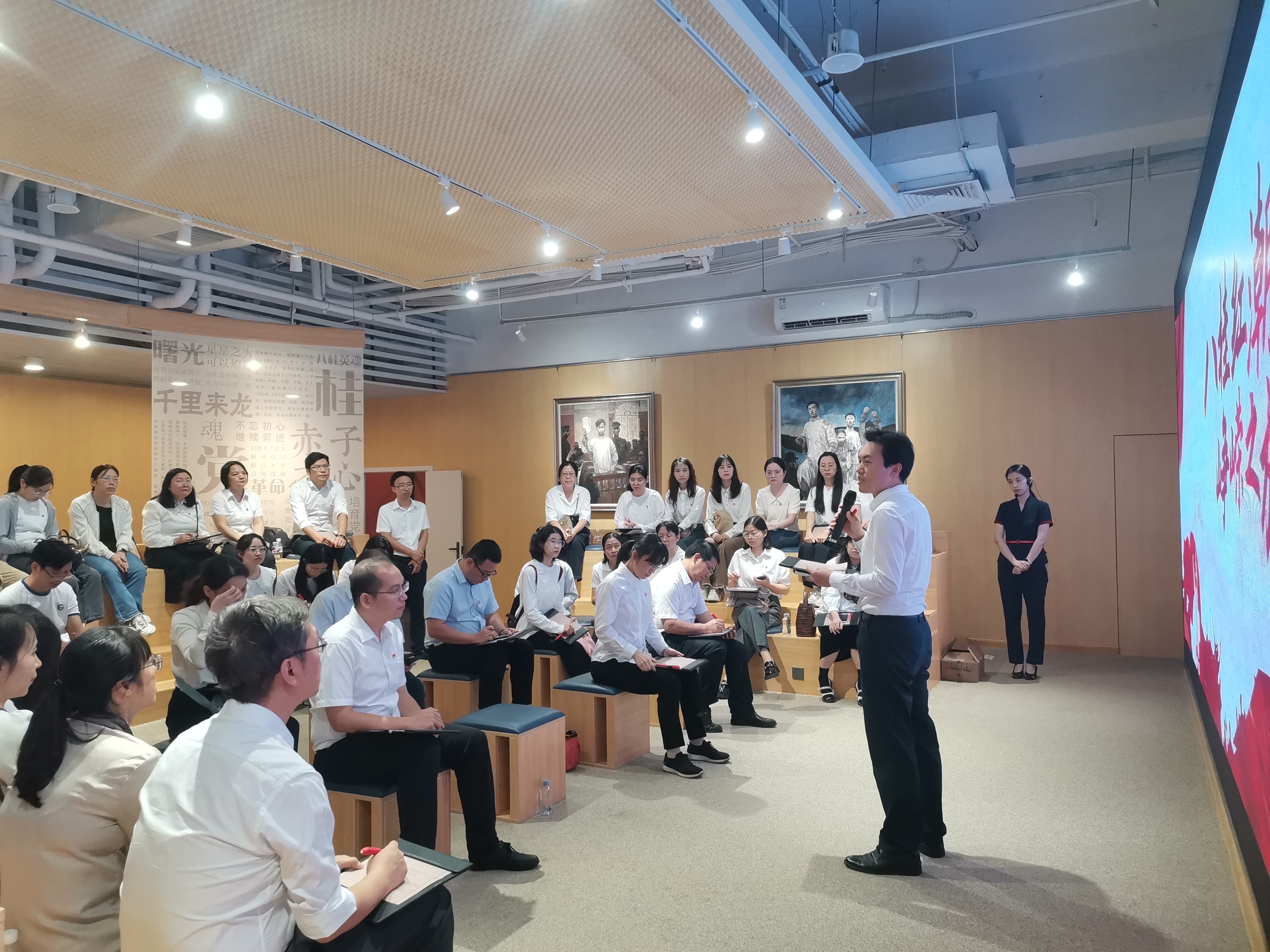 11月3日上午,伟德国际victor1946组织师生代表赴广西新媒体中心“红色记忆”沉浸式体验中心开展“追寻红色记忆 弘扬教育家精神”主题活动。公司全体领导班子成员、师生党员代表及部分党外代表人士共40余人参加了活动。