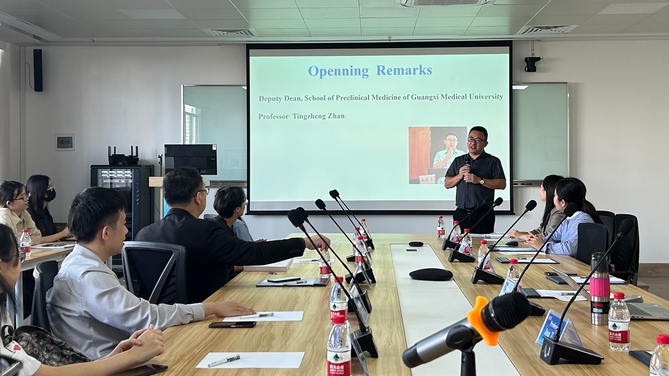 战廷正首先对交流团的到来表示热烈欢迎,并期待今后双方在教学和科研方面进一步合作。会上,双方师生围绕病例讨论促进临床思维与科研能力提升等主题进行了经验分享和深入交流。会后,交流团还参观了公司部分教学和实验平台。