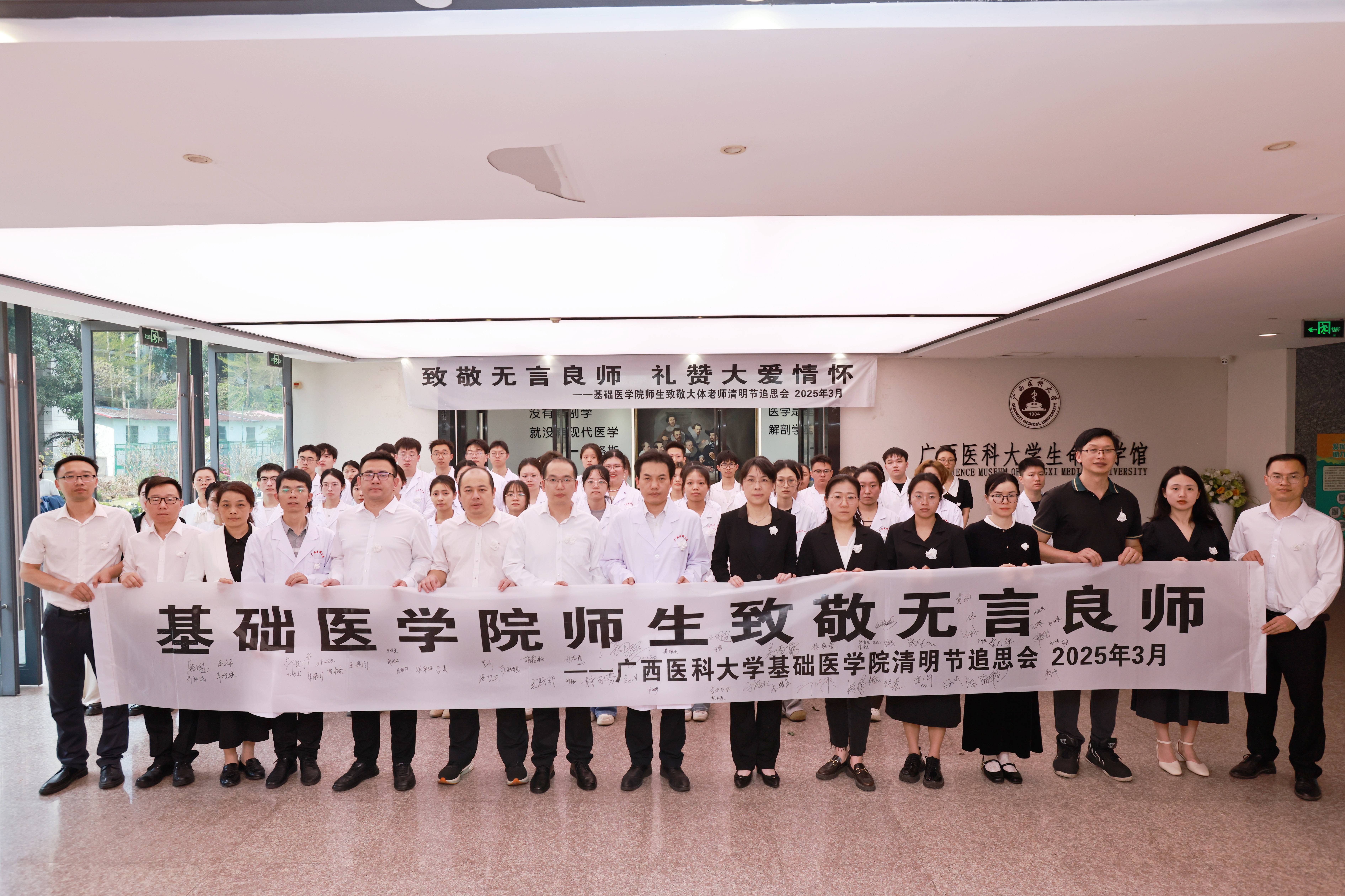 清明寄哀思,誓言传初心。3月27日下午,公司伟德国际victor1946“致敬大体老师——清明追思会”在南宁—校本部生命科学馆举行,感恩逝者义举,追思故者善行。基础医公司领导班子、“人体解剖与组织胚胎学”教育部首批全国高校黄大年式教师团队代表、伟德victor1946网站遗体捐献办公室代表、辅导员及员工代表等50余人参加活动。
