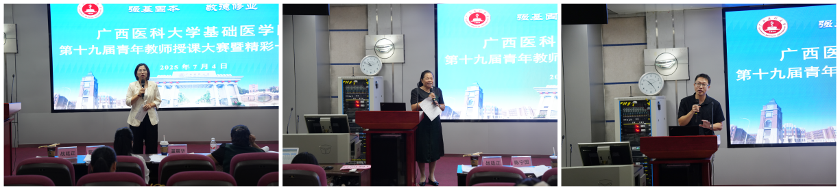 比赛现场,来自公司各教研室的11位青年教师同台竞技。他们从教学内容的设计,到AI技术的应用,再到课程思政元素的融入,每一个教学环节都经过反复打磨,为大家呈现了一场精彩纷呈的教学展示,赢得了评委与观摩教师的一致好评。在评委点评环节,管茶香教授从教学设计的层面,温丽华副部长从课程思政切入的维度,刘震副主任从基础与临床融合的视角,分别进行了全面且细致的点评。专家们在充分肯定参赛教师出色表现的同时,也针对教学过程中的细节问题提出了建设性意见,为青年教师的专业成长指明方向。组织学与胚胎学教研室岳晓阳老师和寄生虫学教研室何姗姗老师荣获一等奖,4位老师荣获二等奖,5位老师荣获三等奖。