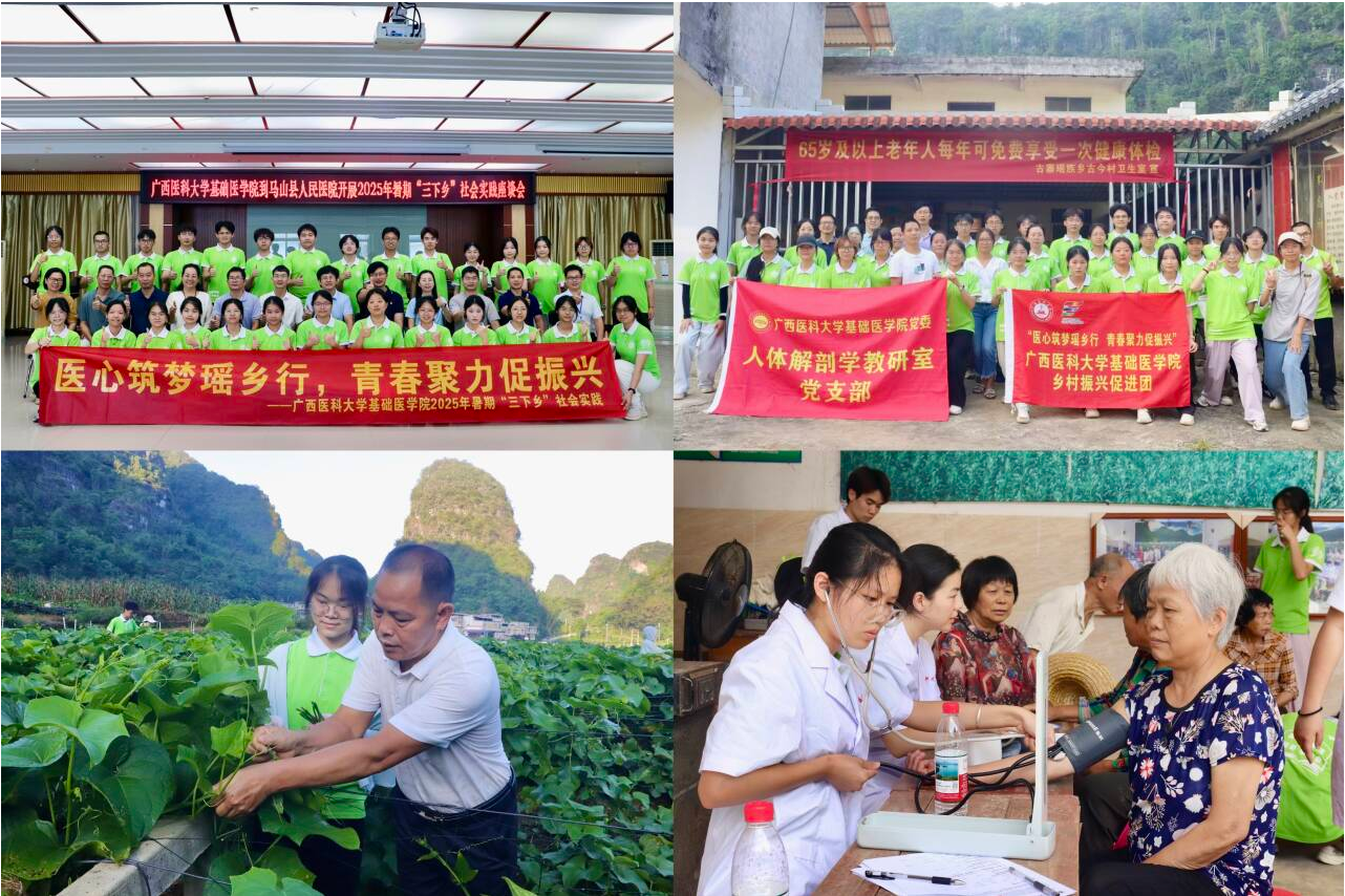 为积极响应“乡村振兴”战略号召,引导医员工在社会实践中锤炼专业技能、厚植家国情怀,伟德国际victor1946员工工作办公室、团委携手教育部首批“全国高校黄大年式教师团队”人体解剖与组织胚胎学教师团队,精心组建三支实践队伍,于7月6日至10日分别赴崇左凭祥市、南宁马山县、百色平果市开展暑期“三下乡”社会实践活动。