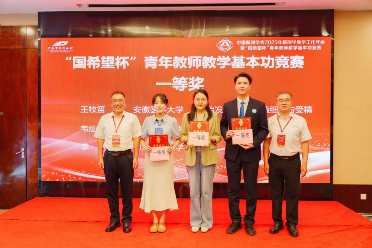 作为年会的重要组成部分,青年教师教学基本功竞赛同期举行,来自全国各级各类院校的23名优秀青年教师同台竞技,经过教案评审、现场授课演示等环节的激烈角逐,公司人体解剖学教研室教师韦灿燊凭借扎实的专业功底、创新的教学设计和出色的临场表现,在竞赛中脱颖而出,斩获大赛一等奖(全国三名)。